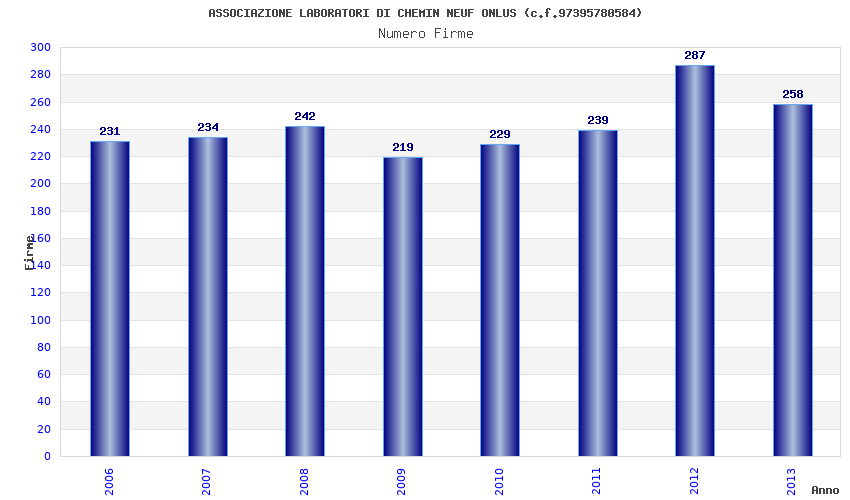 | Anno | Firme | Importi | Media | Naz. | Reg. | Prov. | Comu. |