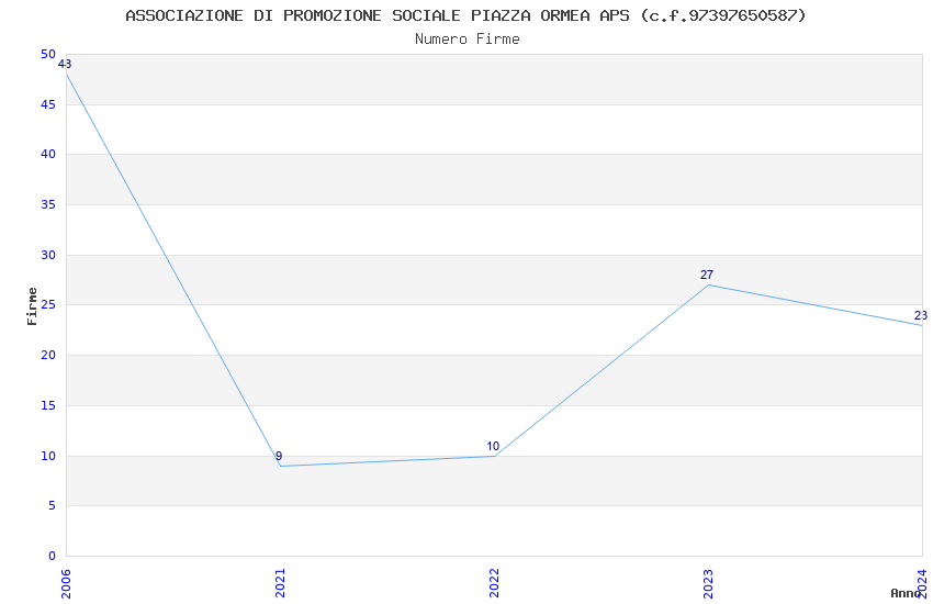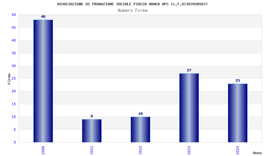 | Anno | Firme | Importi | Media | Naz. | Reg. | Prov. | Comu. |