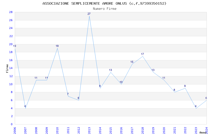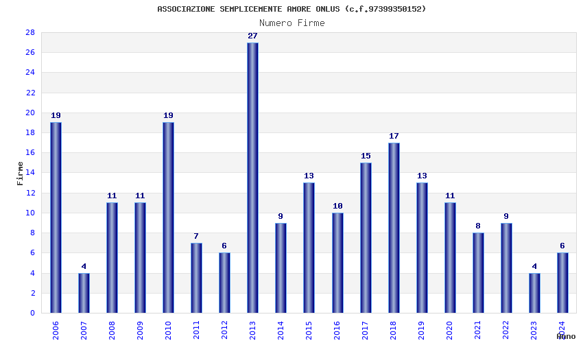 | Anno | Firme | Importi | Media | Naz. | Reg. | Prov. | Comu. |