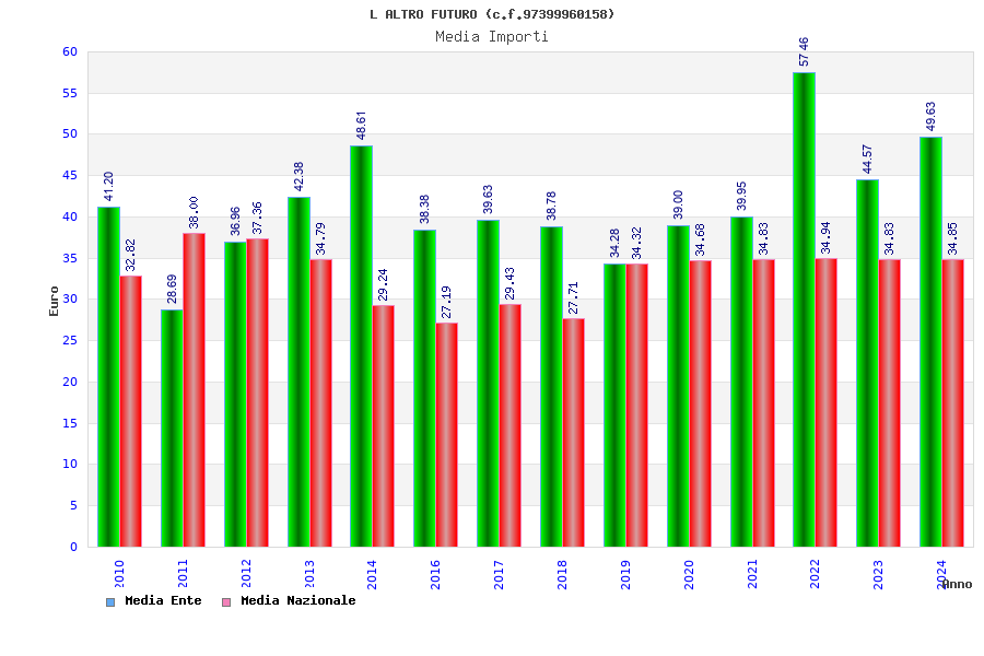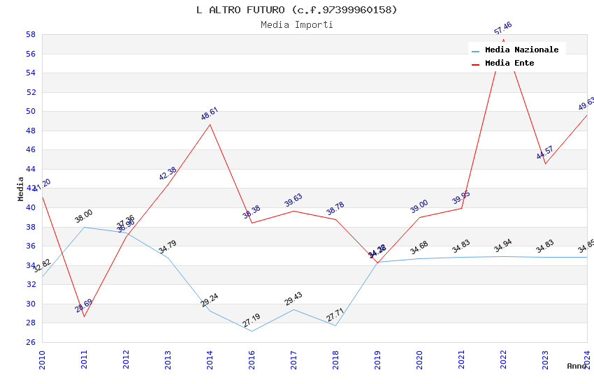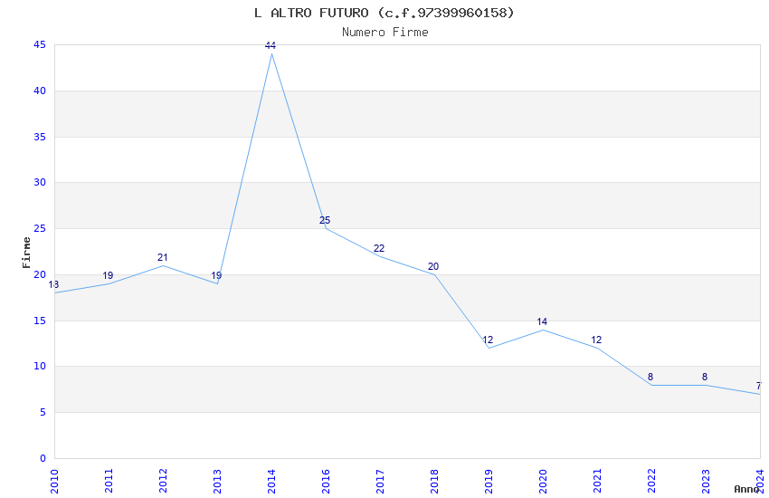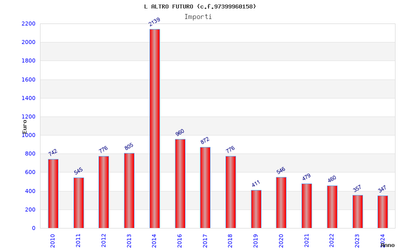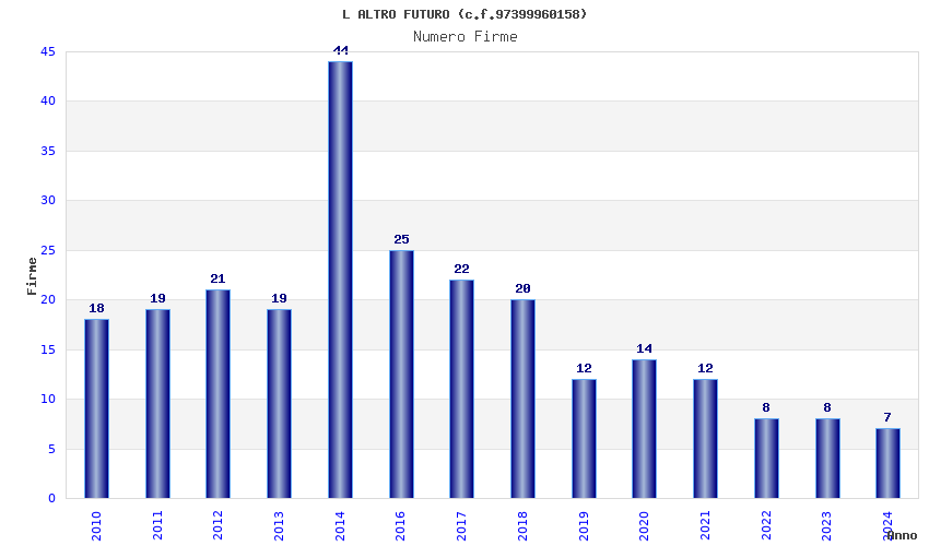 | Anno | Firme | Importi | Media | Naz. | Reg. | Prov. | Comu. |