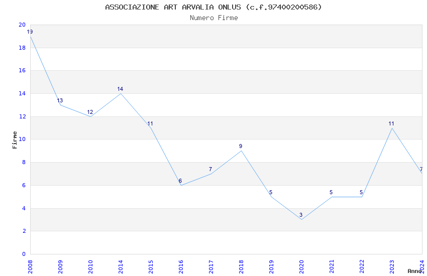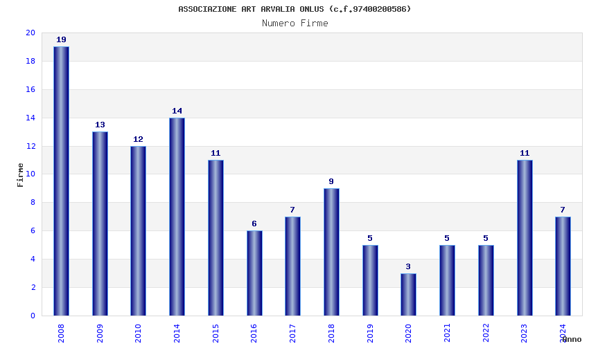 | Anno | Firme | Importi | Media | Naz. | Reg. | Prov. | Comu. |