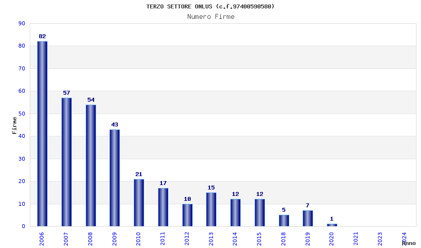 | Anno | Firme | Importi | Media | Naz. | Reg. | Prov. | Comu. |