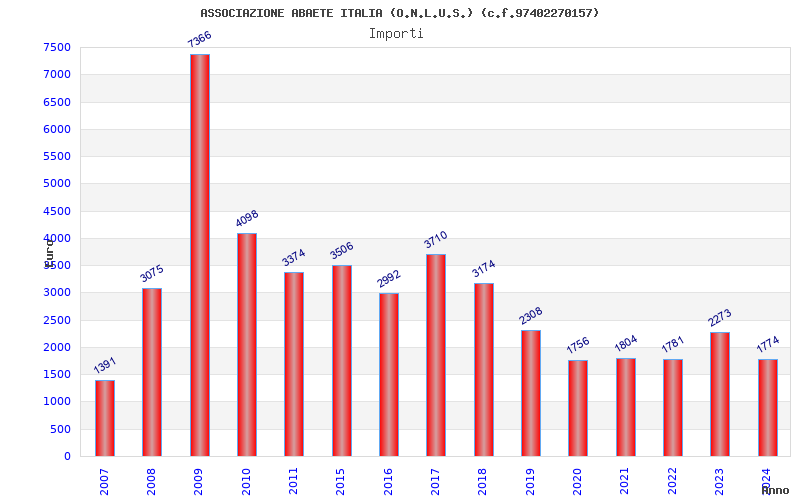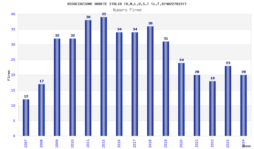 | Anno | Firme | Importi | Media | Naz. | Reg. | Prov. | Comu. |