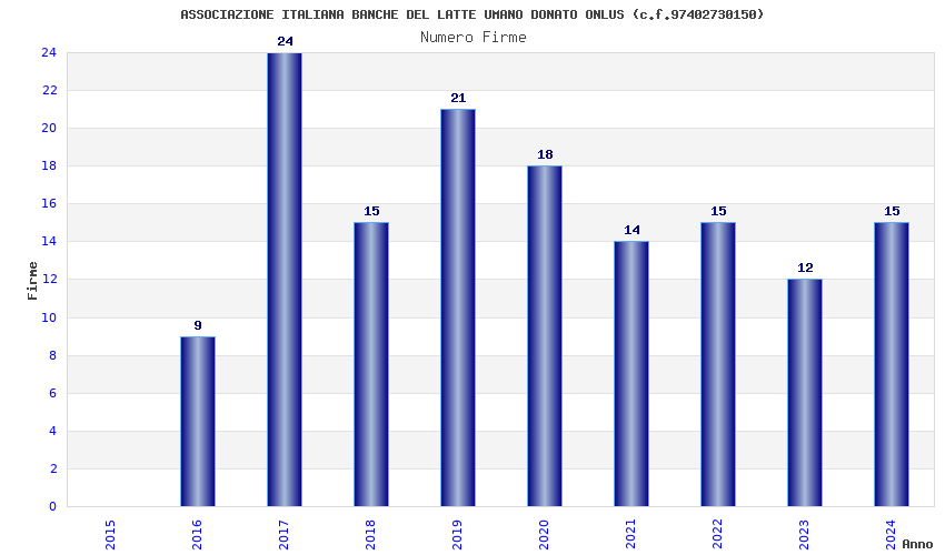 | Anno | Firme | Importi | Media | Naz. | Reg. | Prov. | Comu. |