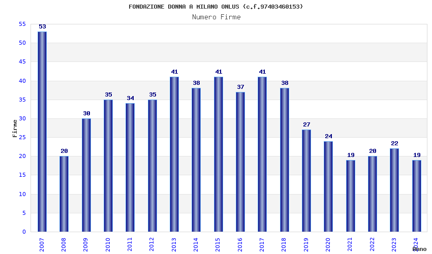 | Anno | Firme | Importi | Media | Naz. | Reg. | Prov. | Comu. |
