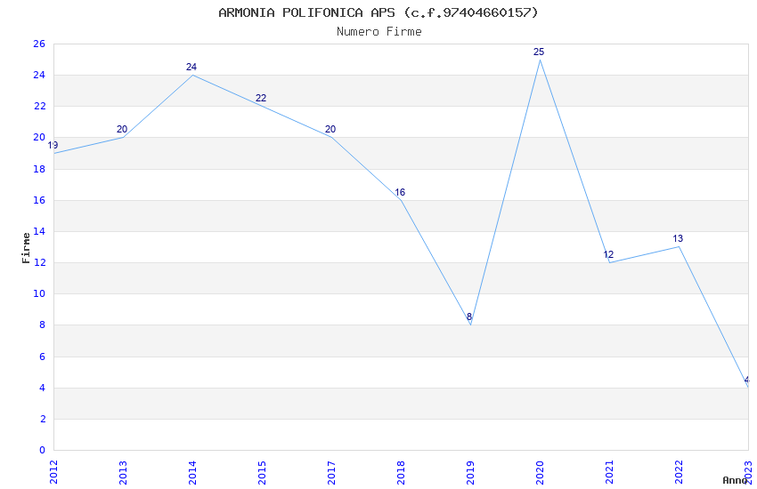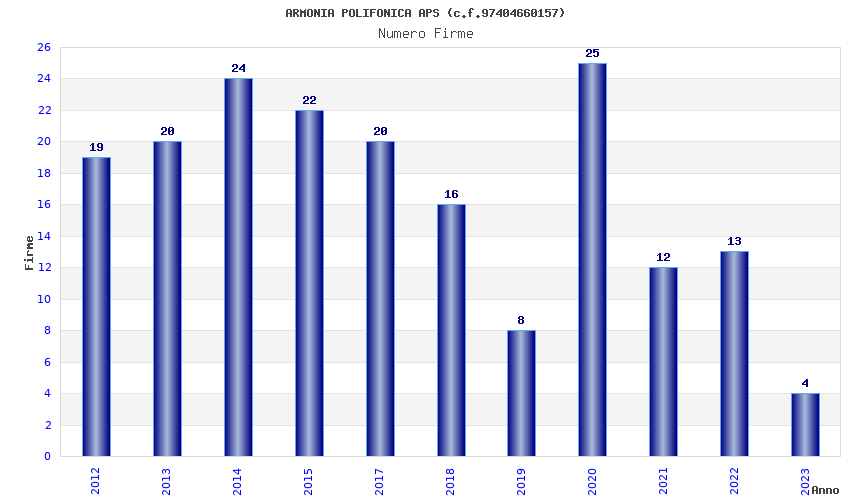 | Anno | Firme | Importi | Media | Naz. | Reg. | Prov. | Comu. |