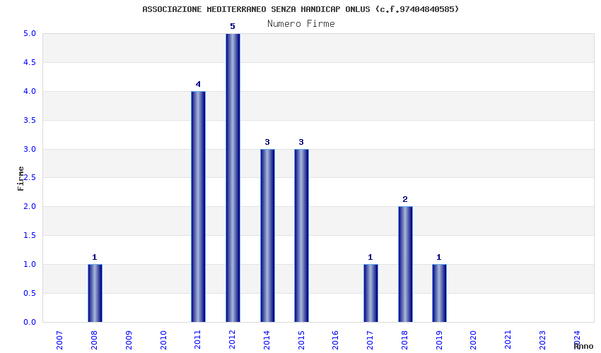 | Anno | Firme | Importi | Media | Naz. | Reg. | Prov. | Comu. |