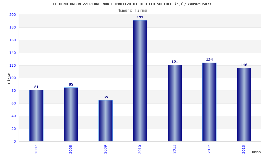 | Anno | Firme | Importi | Media | Naz. | Reg. | Prov. | Comu. |