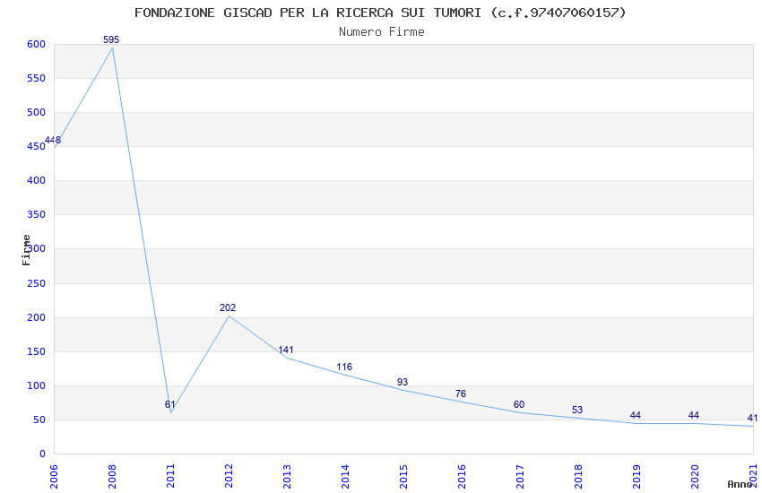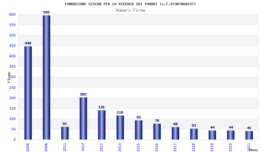 | Anno | Firme | Importi | Media | Naz. | Reg. | Prov. | Comu. |