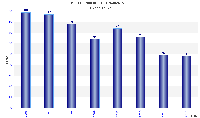 | Anno | Firme | Importi | Media | Naz. | Reg. | Prov. | Comu. |