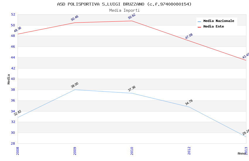 | Anno | Firme | Importi | Media | Naz. | Reg. | Prov. | Comu. |