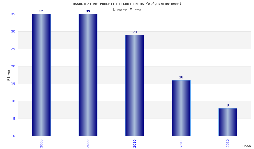 | Anno | Firme | Importi | Media | Naz. | Reg. | Prov. | Comu. |