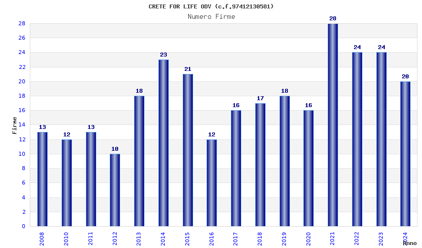 | Anno | Firme | Importi | Media | Naz. | Reg. | Prov. | Comu. |