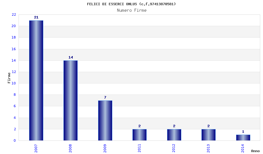 | Anno | Firme | Importi | Media | Naz. | Reg. | Prov. | Comu. |