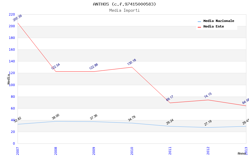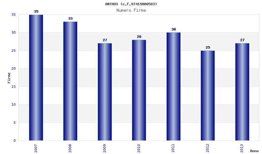 | Anno | Firme | Importi | Media | Naz. | Reg. | Prov. | Comu. |