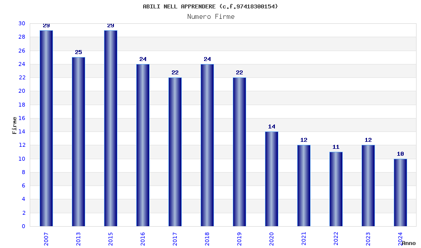 | Anno | Firme | Importi | Media | Naz. | Reg. | Prov. | Comu. |
