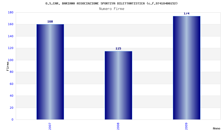 | Anno | Firme | Importi | Media | Naz. | Reg. | Prov. | Comu. |