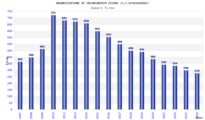| Anno | Firme | Importi | Media | Naz. | Reg. | Prov. | Comu. |