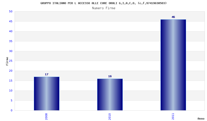 | Anno | Firme | Importi | Media | Naz. | Reg. | Prov. | Comu. |