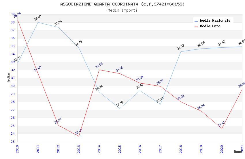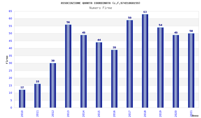 | Anno | Firme | Importi | Media | Naz. | Reg. | Prov. | Comu. |