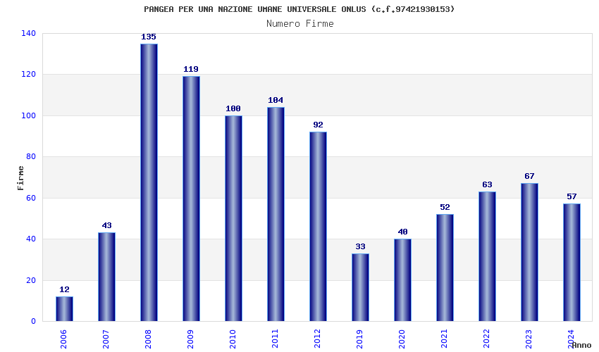 | Anno | Firme | Importi | Media | Naz. | Reg. | Prov. | Comu. |
