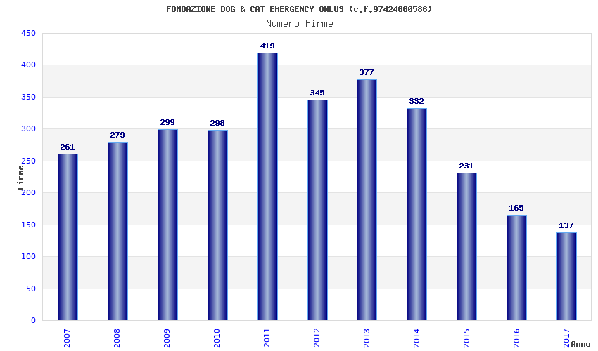 | Anno | Firme | Importi | Media | Naz. | Reg. | Prov. | Comu. |