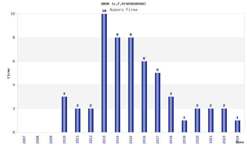 | Anno | Firme | Importi | Media | Naz. | Reg. | Prov. | Comu. |