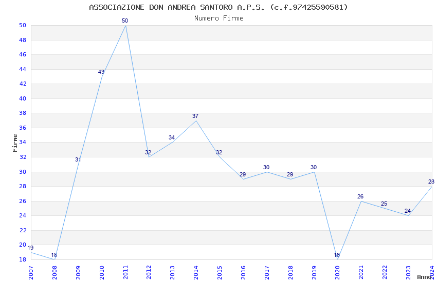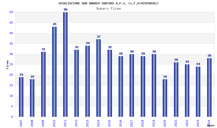 | Anno | Firme | Importi | Media | Naz. | Reg. | Prov. | Comu. |