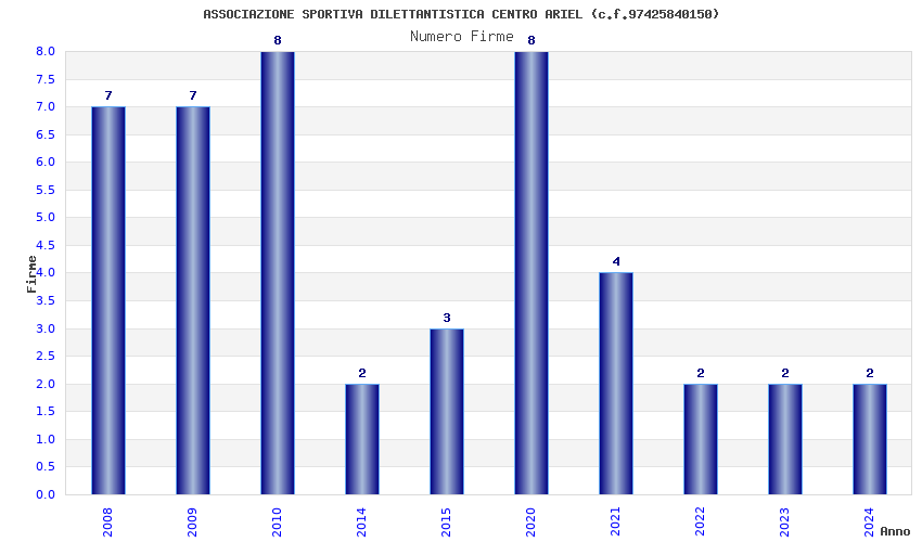 | Anno | Firme | Importi | Media | Naz. | Reg. | Prov. | Comu. |