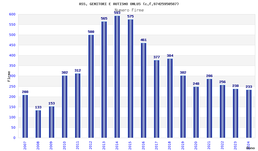 | 2024 | 233 | 10.696,07 | 45,91 | 4.545 | 628 | 572 | 520 |