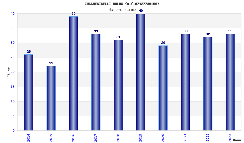 | Anno | Firme | Importi | Media | Naz. | Reg. | Prov. | Comu. |