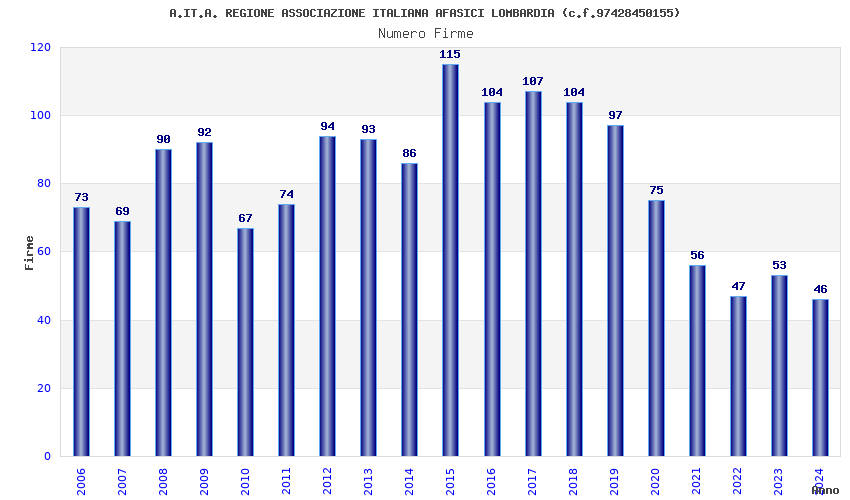 | Anno | Firme | Importi | Media | Naz. | Reg. | Prov. | Comu. |