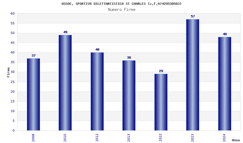 | Anno | Firme | Importi | Media | Naz. | Reg. | Prov. | Comu. |