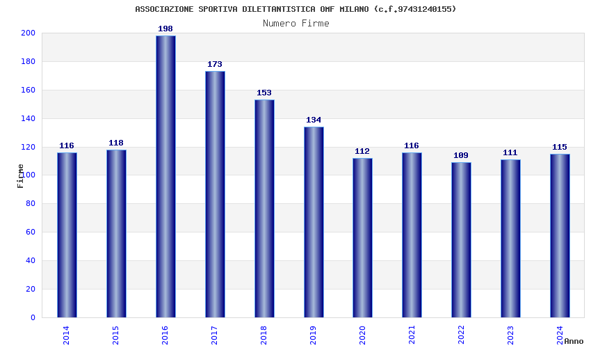 | Anno | Firme | Importi | Media | Naz. | Reg. | Prov. | Comu. |