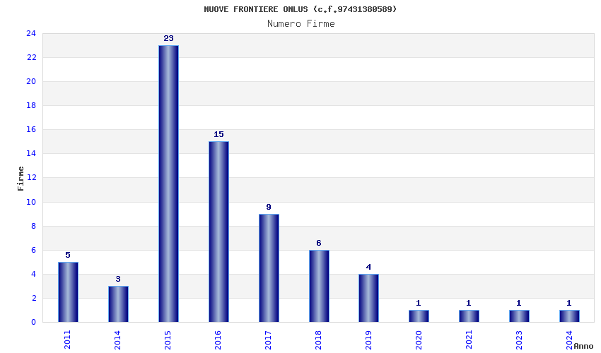 | Anno | Firme | Importi | Media | Naz. | Reg. | Prov. | Comu. |