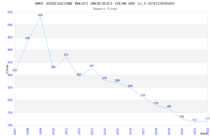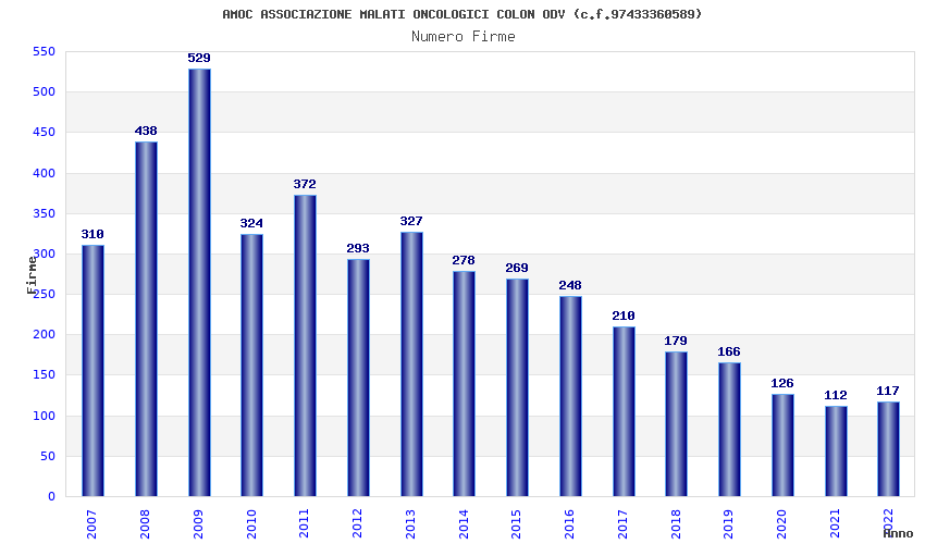 | Anno | Firme | Importi | Media | Naz. | Reg. | Prov. | Comu. |