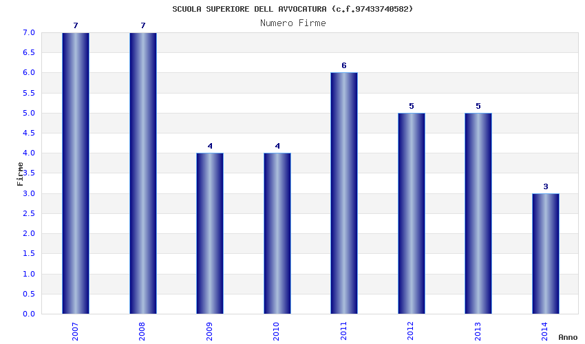 | Anno | Firme | Importi | Media | Naz. | Reg. | Prov. | Comu. |