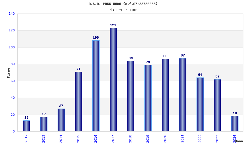| Anno | Firme | Importi | Media | Naz. | Reg. | Prov. | Comu. |