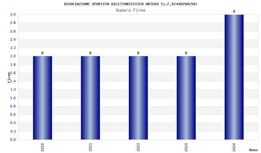 | Anno | Firme | Importi | Media | Naz. | Reg. | Prov. | Comu. |
