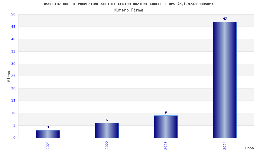 | Anno | Firme | Importi | Media | Naz. | Reg. | Prov. | Comu. |