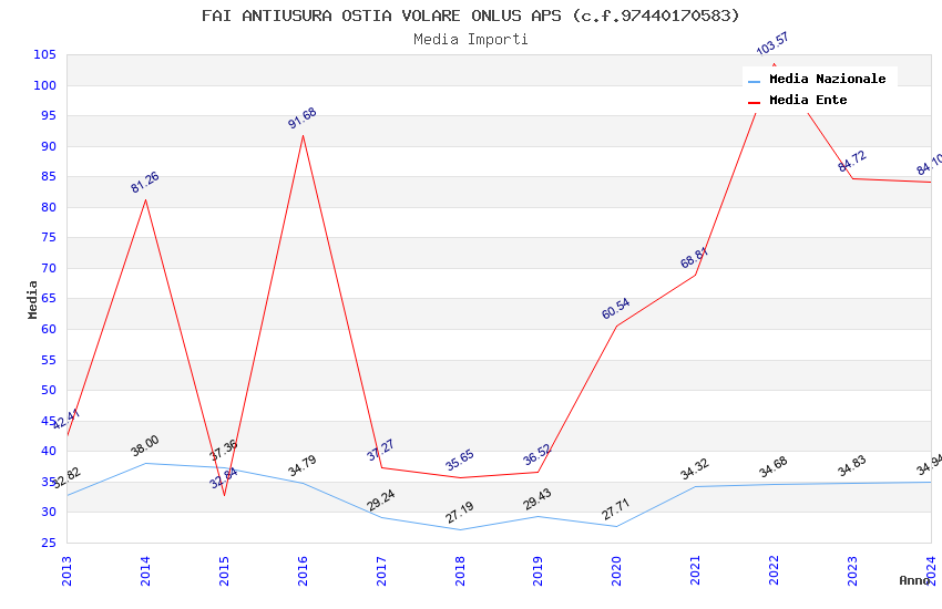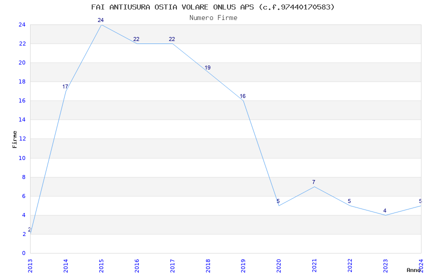 | Anno | Firme | Importi | Media | Naz. | Reg. | Prov. | Comu. |
