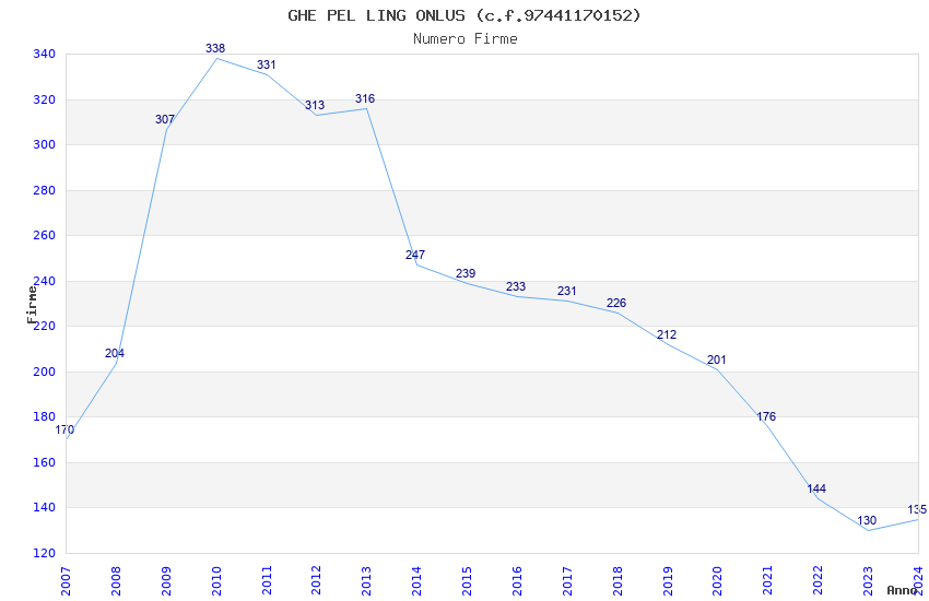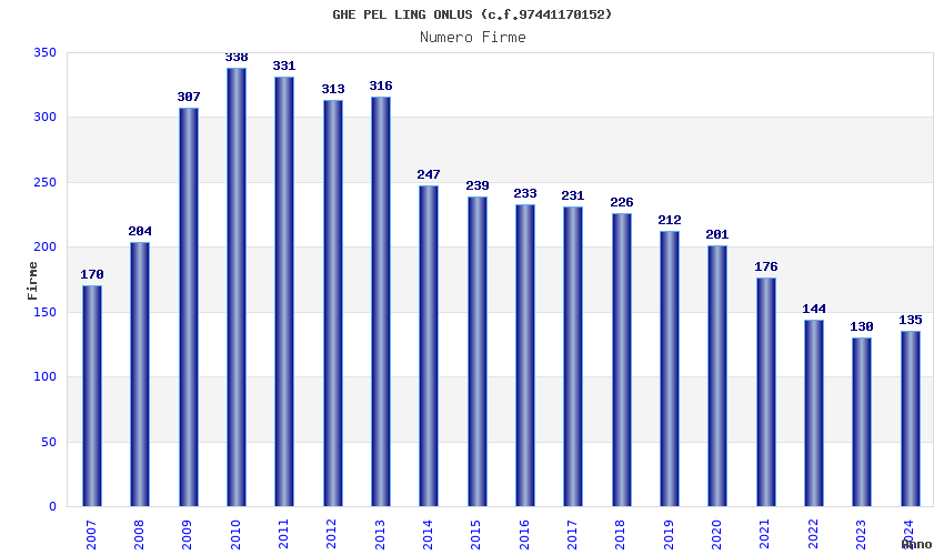 | Anno | Firme | Importi | Media | Naz. | Reg. | Prov. | Comu. |