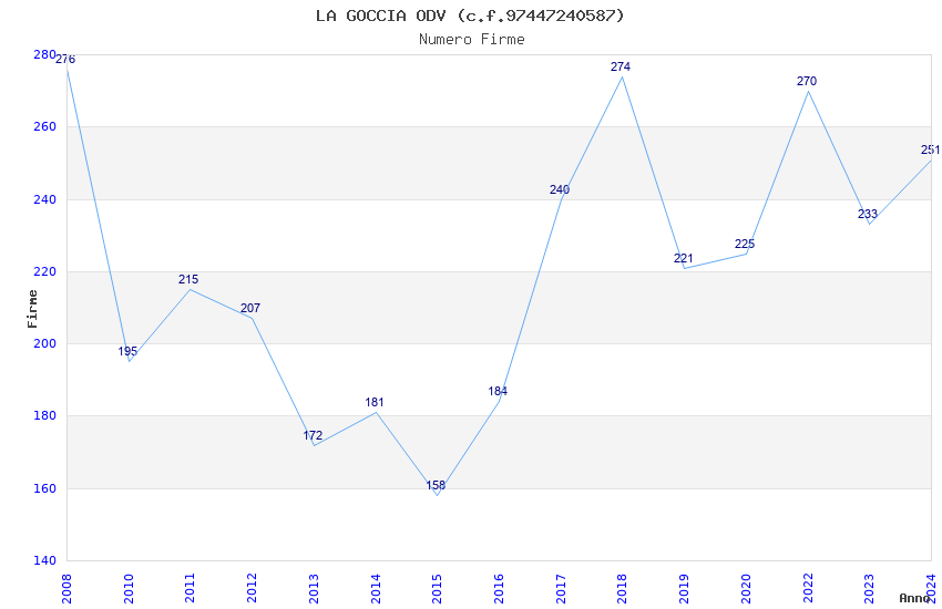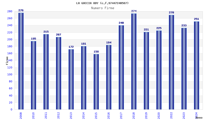 | Anno | Firme | Importi | Media | Naz. | Reg. | Prov. | Comu. |