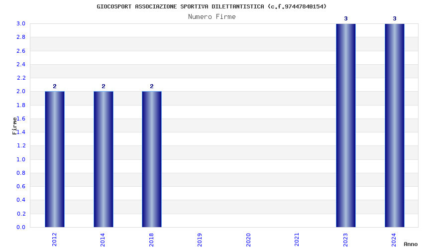 | Anno | Firme | Importi | Media | Naz. | Reg. | Prov. | Comu. |