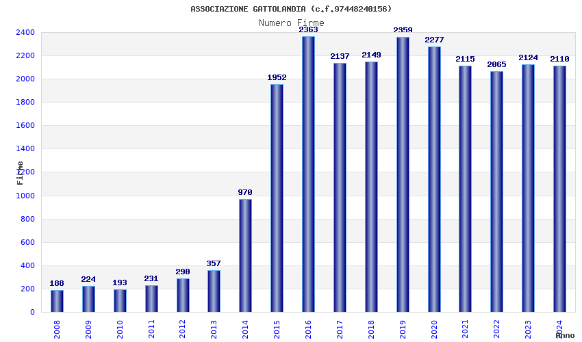 | Anno | Firme | Importi | Media | Naz. | Reg. | Prov. | Comu. |