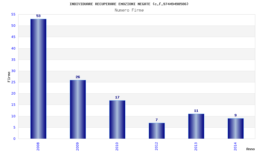 | Anno | Firme | Importi | Media | Naz. | Reg. | Prov. | Comu. |