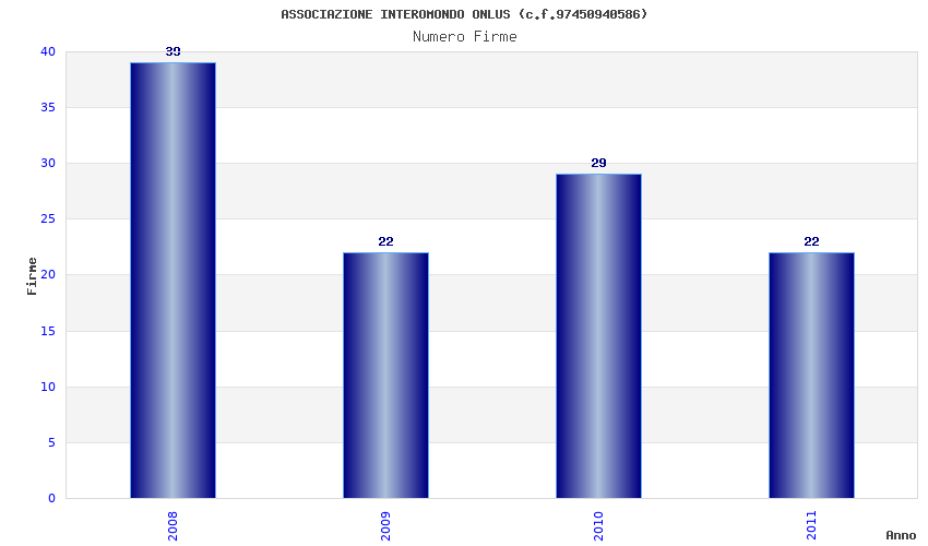 | Anno | Firme | Importi | Media | Naz. | Reg. | Prov. | Comu. |