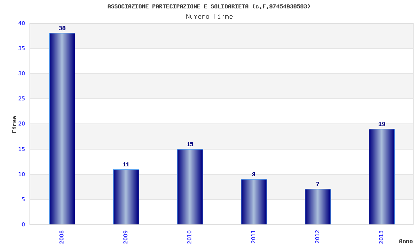 | Anno | Firme | Importi | Media | Naz. | Reg. | Prov. | Comu. |