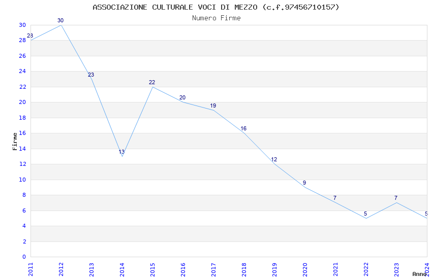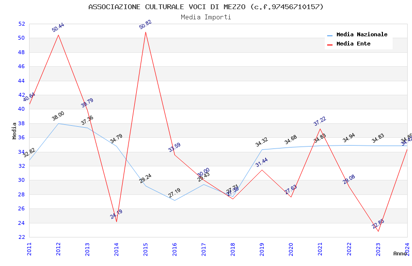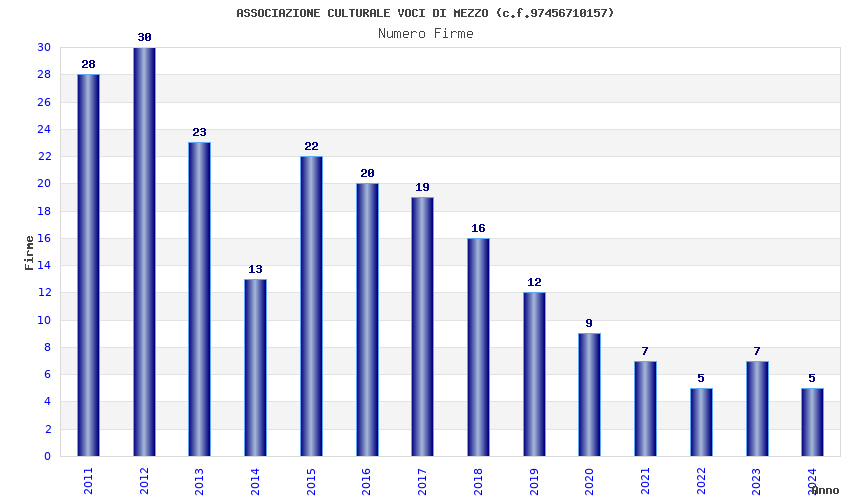 | Anno | Firme | Importi | Media | Naz. | Reg. | Prov. | Comu. |