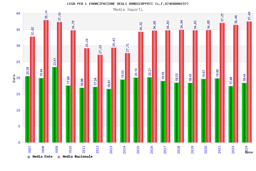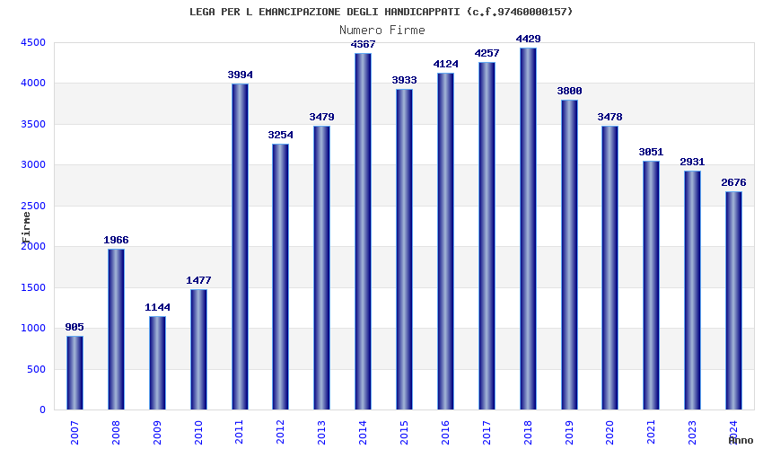 | Anno | Firme | Importi | Media | Naz. | Reg. | Prov. | Comu. |